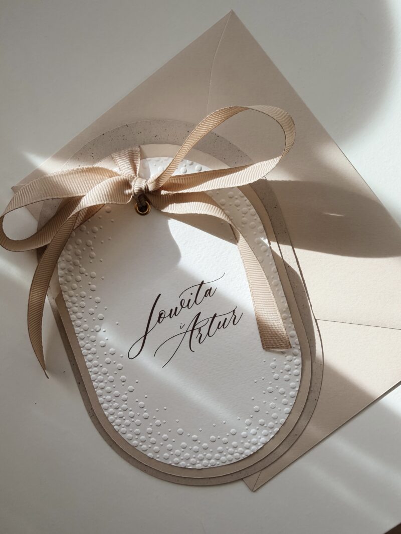 Od pierwszego zaproszenia, przez winietki i zawieszki, aż po menu i księgę gości – pomagamy stworzyć spójną, elegancką papeterię ślubną, która zachwyca od pierwszego spojrzenia.