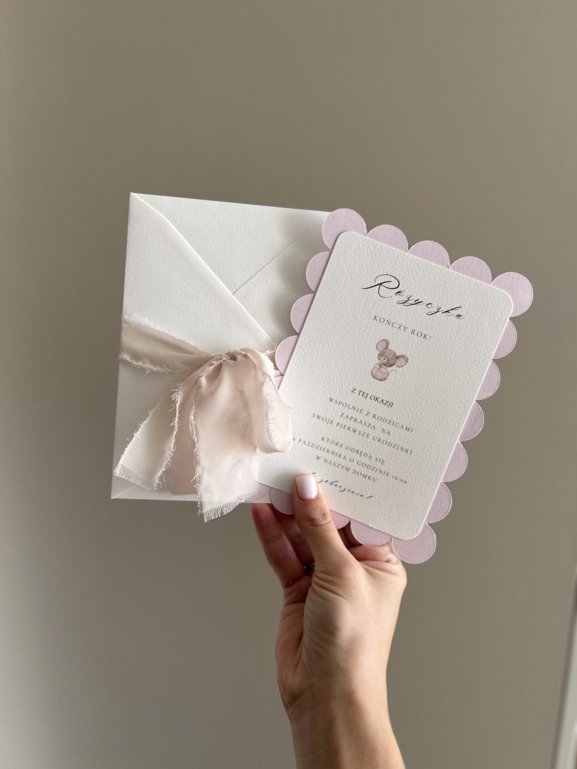 W wiadomości uwzględnij: imię dziecka, datę, miejsce i godzinę uroczystości. Jeśli chcesz, aby zaproszenia były imienne – dołącz również listę gości, dokładnie w takiej formie, w jakiej mają pojawić się na zaproszeniach – nie wprowadzam żadnych zmian ani poprawek. Pamiętaj, aby w liście uwzględnić również ewentualne zwroty grzecznościowe.