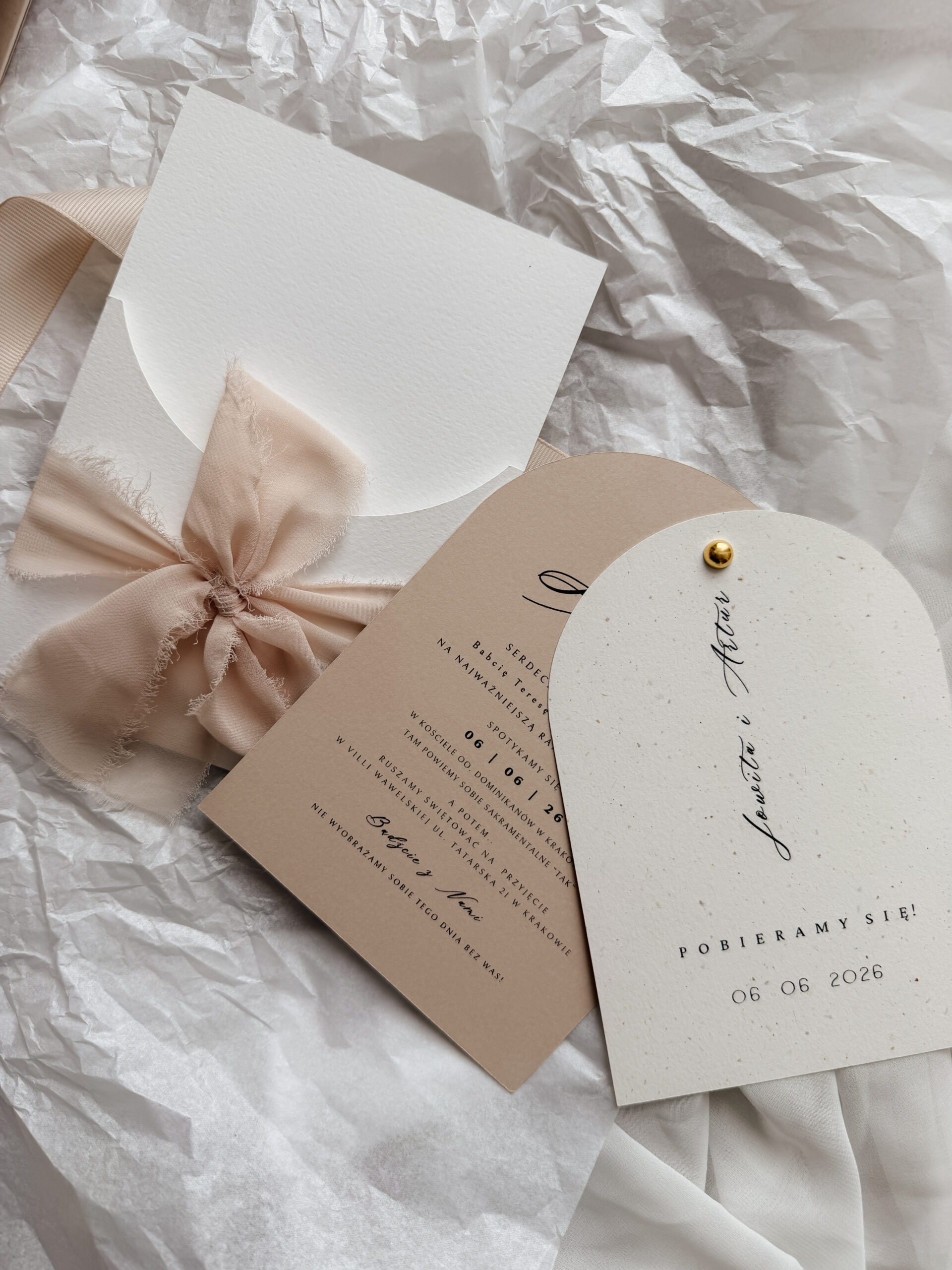 Zaproszenie ślubne stworzone z myślą o parach, które kochają detale, naturalność i subtelną oryginalność. Każdy kształt jest niepowtarzalny — dokładnie jak Wasza historia.