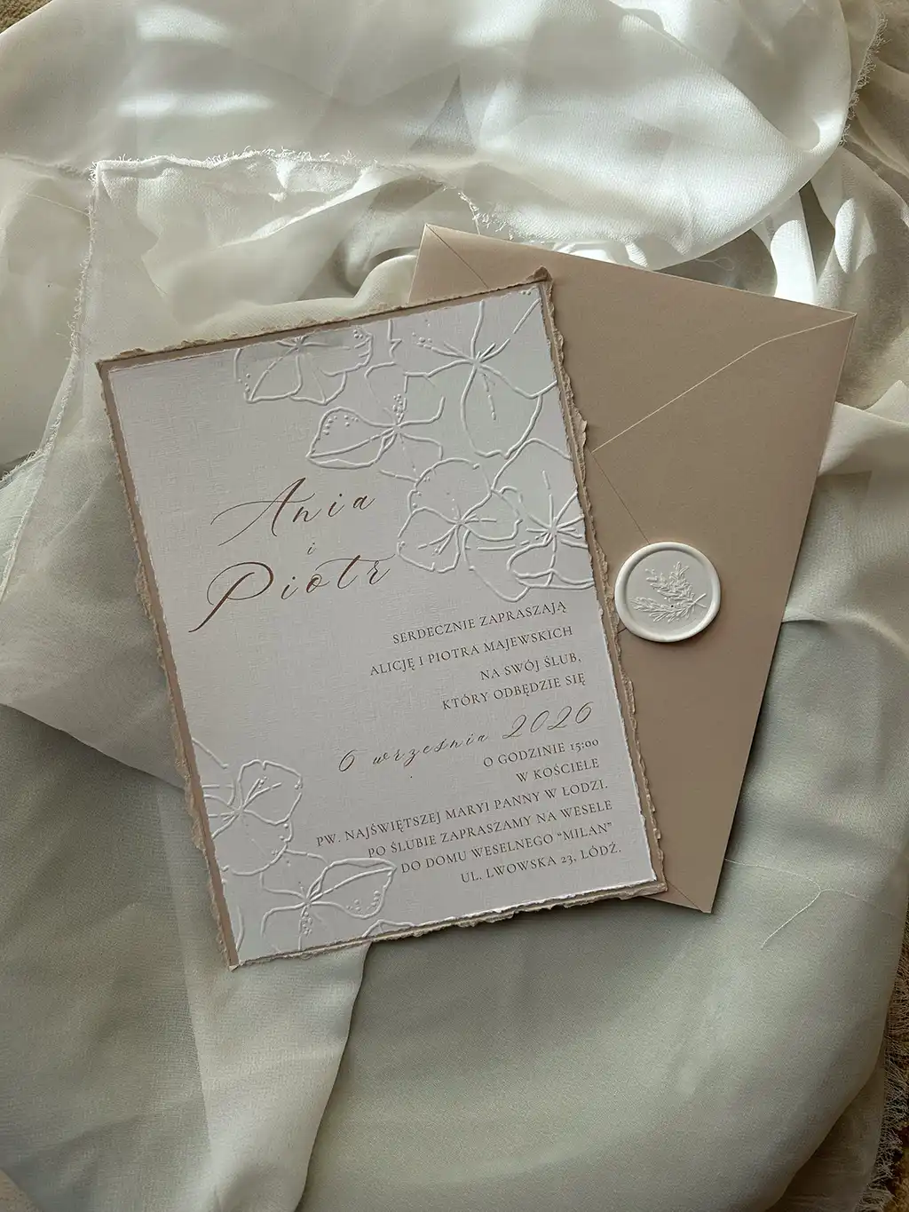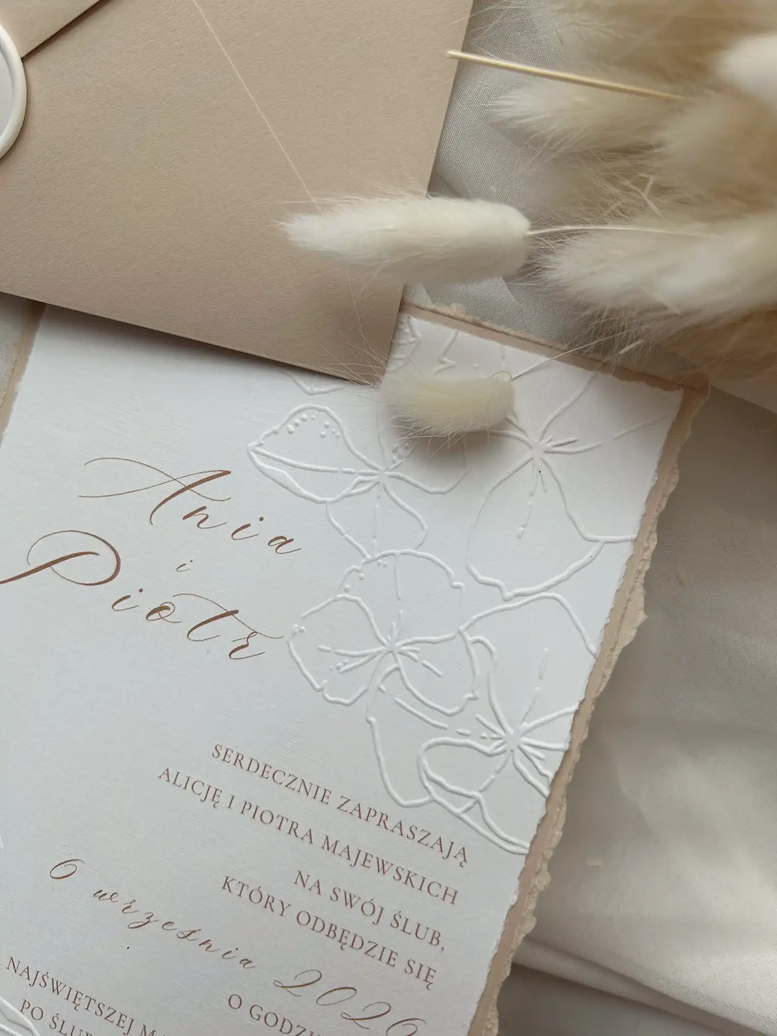 W wiadomości uwzględnij: imiona Pary Młodej, datę, miejsce i godzinę uroczystości. Jeśli chcesz, aby zaproszenia były imienne – dołącz również listę gości, dokładnie w takiej formie, w jakiej mają pojawić się na zaproszeniach – nie wprowadzam żadnych zmian ani poprawek. Pamiętaj, aby w liście uwzględnić również ewentualne zwroty grzecznościowe.